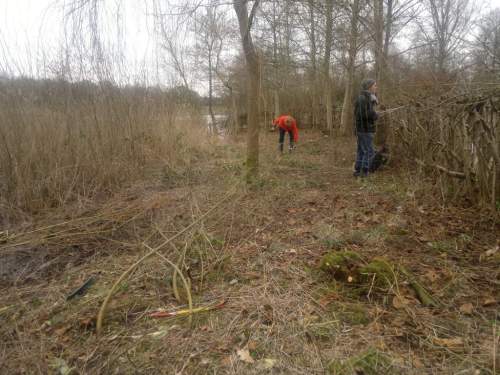 Removing encroaching trees from a reed bed at Chorlton Water Park