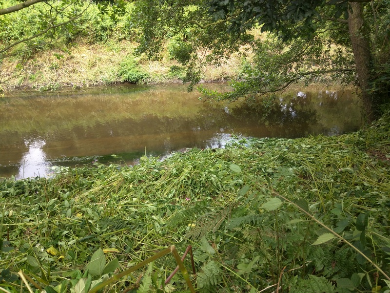 Himalayan balsam cleared on the bank of the Bollin