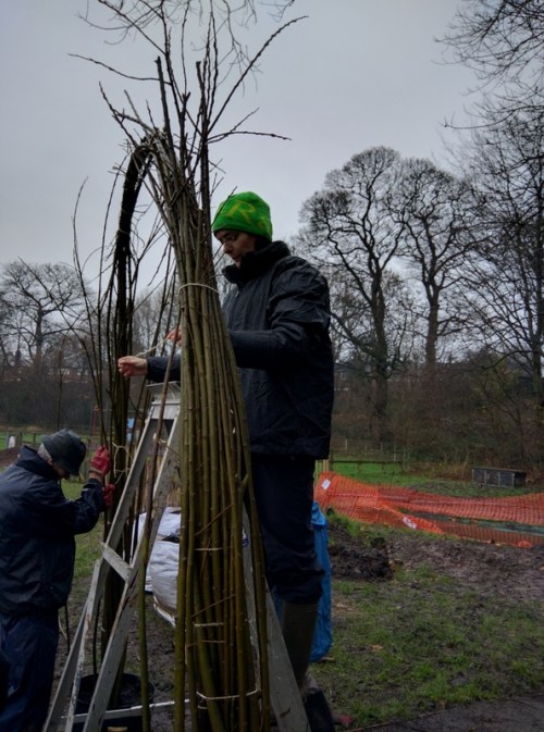 Groynes, an arch and seasonal festivities » Working on the willow arch 4