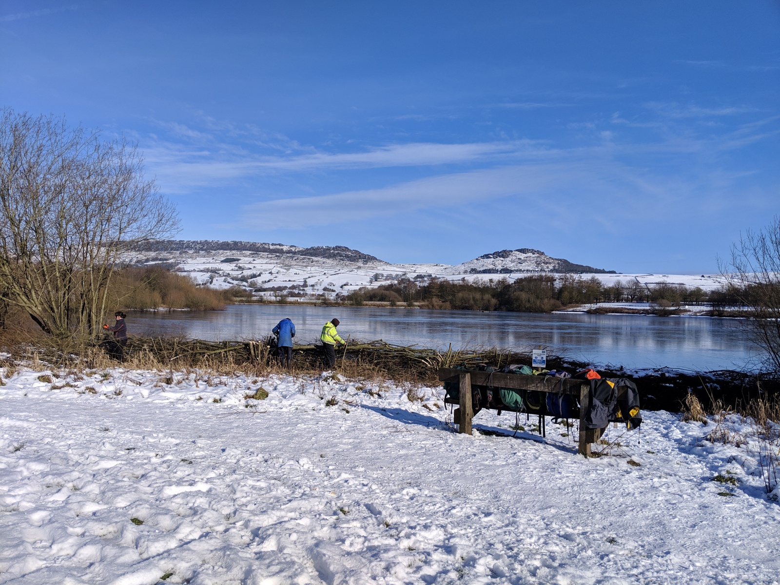 Willow and snow at Tittesworth » Volunteers at work on willow barrier